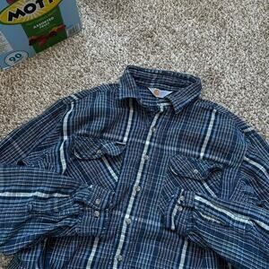 Perfect Vintage 90s Carhhartt Cotton Blue White Rugged Plaid Flannel Button Up Shirt