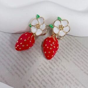 Perfect Picnic Red Strawberry White Flower Dangle Earrings New