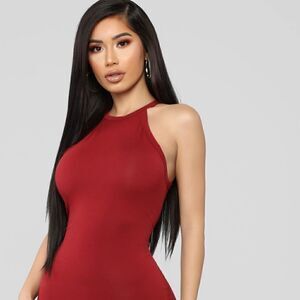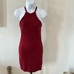Spaghetti straps Color: Burgundy High Neck Stretch 33 length Rayon/spandex/Cotton Size: small Machine washable Previously worn in good condition