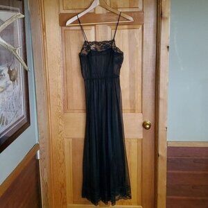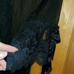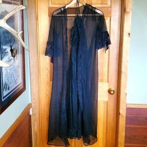 Perfectform Vintage Black Lace & Ribbons Sheer 2 piece Sz. 32C Negligee & Robe