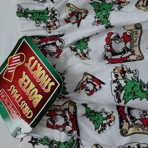 Fun boxer shorts with Santa and tree design. Perfect for holiday cheer.