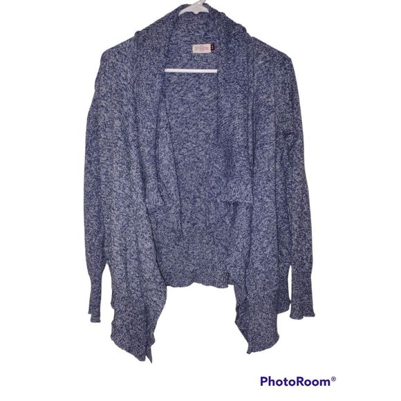 PERFECTLY SOFT/ PERFECTLY YOU blue white mix open ruffled front sweater.