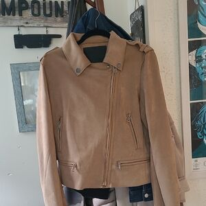 Perfet Fall Guess Tan Faux Soft Suede Jacket Asymmetrical Zipper