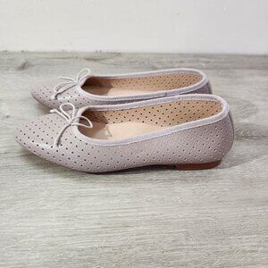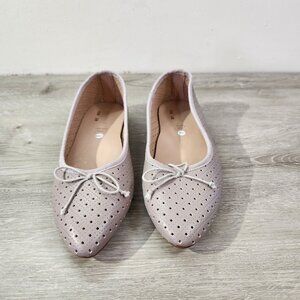 Perforated Pointed Toe Leather Ballet Flats By Emerald Eu Size 38 US Size 7.5