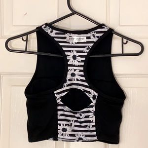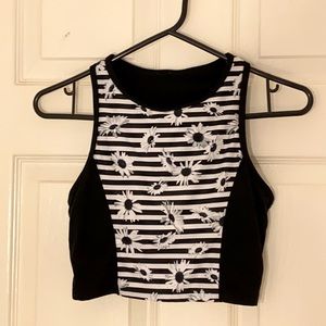 Comfortable Performance Crop Top Black with white stripes and daisies. Double bra support with pads. Never worn!