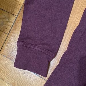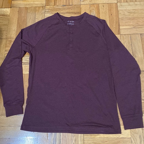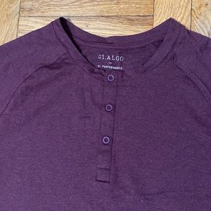 Burgundy performance shirt with half button front placket. Crew neck. Quick dry, moisture wicking, anti odor, UV SPF 40.