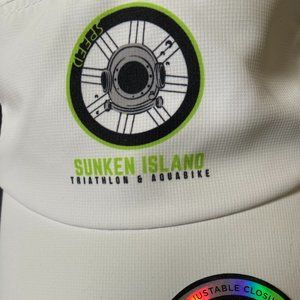 Boco Gear Performance Hat. Moisture wicking fabric and machine washable. One size. Adjustable closure. Sunken Island Triathlon & Aquabike is silkscreened on the front of cap. New with Tags.