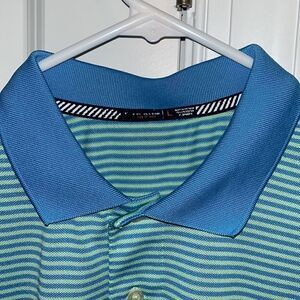 Performance Southern Tide Skipjack Tuna Golf Polo Shirt L Blue Green Stripe