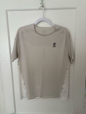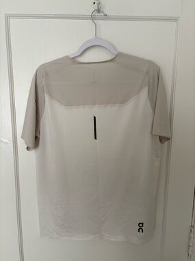 Very good used condition and has no notable flaws. Ultra lightweight running shirt with reflective details. Pearl/undyed colorway.