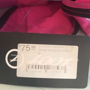Women’s small performance tank, passion fruit color, very lightweight with built in sports bra.