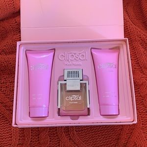 Clips all perfume gift set complete with perfume body lotion and shower gel (not used still in box)
