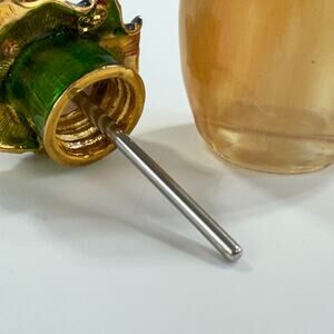 Perfume Bottle With Metal Frog Screw Top Dauber Multicolor Rhinestones Marked R