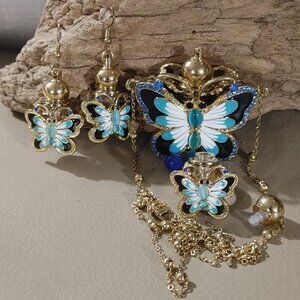 Perfume Butterfly Statement Jewelry Set Necklace Earring Ring Enamel Detailing