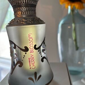 Al Immerse yourself in the delicate elegance of Haramain Cherry Blossom Concentrated Perfume Oil. This enchanting fragrance opens with a vibrant blend of bergamot, orange flower, and rose, capturing the essence of a blooming cherry blossom garden. As the scent unfolds, a heart of musk, cedarwood, and vanilla adds depth and warmth, creating a harmonious balance. The fragrance gracefully settles into a luxurious base of vanilla, sandalwood, and musk, leaving a lasting impression of sophistication and serenity. Perfect for any occasion, Haramain Cherry Blossom is a true testament to the art of perfumery, offering a blend of invigorating and comforting notes that transport you to a world of refined beauty.