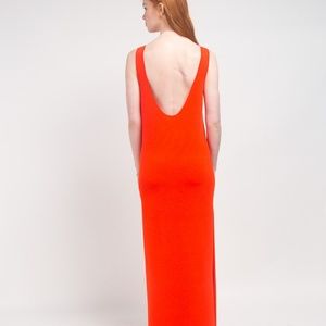 Beautiful coral colored floor length double-knit tank dress with low back and side slits. Sold out online!