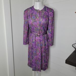 Peri Petites Vintage Button Up Belted Dress ~ Sz 6 ~ Purple ~ Midi ~ Long Sleeve