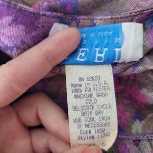 Peri Petites Vintage Button Up Belted Dress ~ Sz 6 ~ Purple ~ Midi ~ Long Sleeve ~ 21" Arm Pit to Arm Pit ~ 23" Sleeve Length ~ 12.5" Across Waist (Elastic Waist ~ 43" Total Length