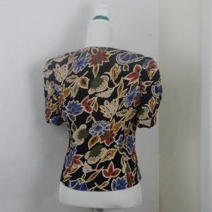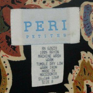 Peri Petites Women's Button Front Shirt Size 8 Black Blue Sleeve Shirt (SS062)