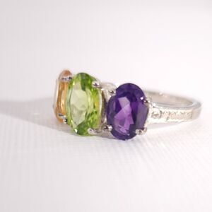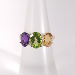 Peridot Amethyst & Citrine Sterling Silver Ring SIZE 5.