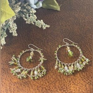 Peridot & Citrine Hollow Out Round Beaded Fringe Drop Dangle Earrings