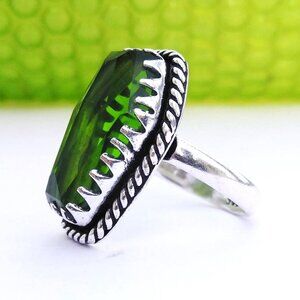 Peridot Coffin Cut Gemstone Sterling Silver Ring SZ 7