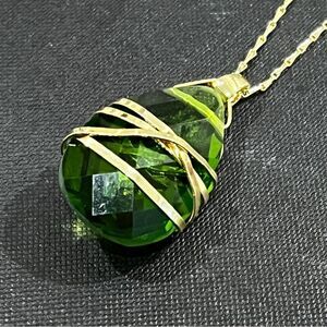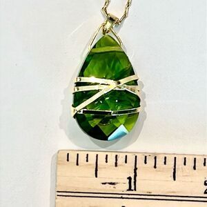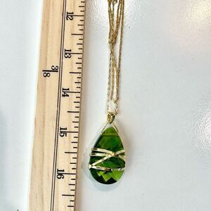 Peridot Green Crystal Pendant MultiStrand Necklace 14K Gold Wrapped Teardrop NEW