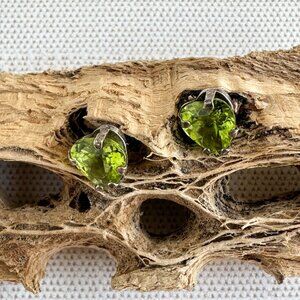 These vintage peridot earrings feature vibrant heart-cut green gemstones set in sterling silver, a lovely gift option for August birthdays or gemstone lovers.