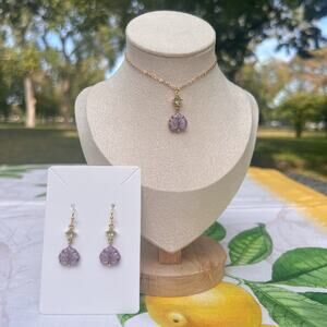 peridot necklace, light green necklace, lime green necklace, lime necklace, lavender necklace, amethyst necklace, light purple necklace, ethereal necklace, leaf necklace, maple necklace, maple leaf necklace, autumn necklace, winter necklace, casual necklace, , August birthday jewelry, August birthstone, peridot gift, neutral necklace, coquette, preppy, pastel, wedding, party, coquette, fairy queen, festival, fairycore, cottagecore, anniversary gift, birthday gift, cabbage necklace, elegant, fairy necklace, vintage style
