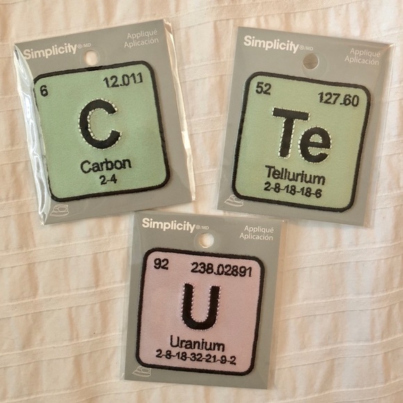 3 iron-on patches of different elements from the Periodic Table! You’ll receive all 3. Never been used!