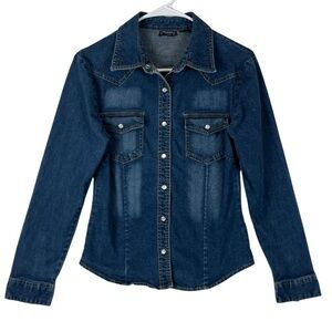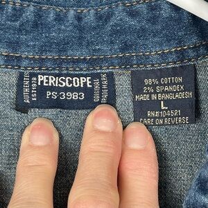 Periscope PS 3983 Women’s Western Style Stretch Denim Shirt w/ Pearl Snaps Sz Lg