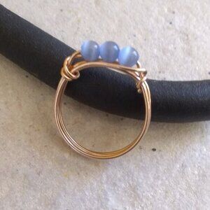 Uniquely handmade with genuine 4mm pale blue, periwinkle blue Catseye Beads. Each ring is slightly different as these are unique stones and each of those is a bit different in clarity, color hue and matrix from the next one. As with natural Tigereseye, the colorful manmade version called Catseye, the color intensity and shimmer or reflection is subject to the lighting, your skin tone and the color of the clothes you happen to wear.