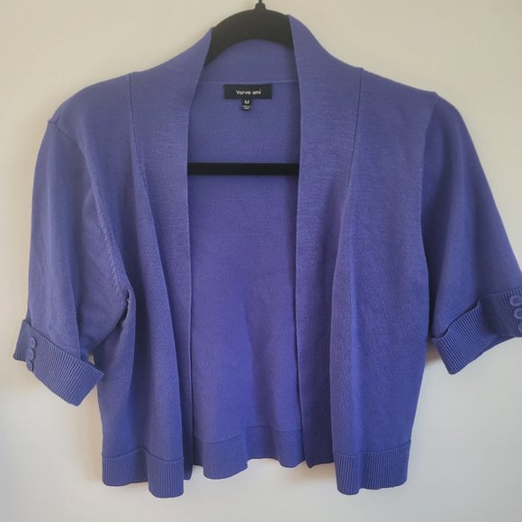 Periwinkle Cropped Short Sleeve Sweater Cardigan