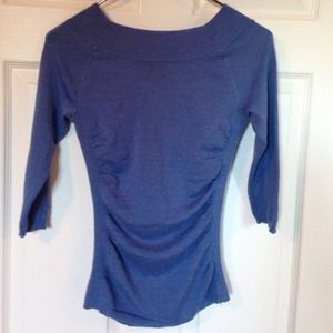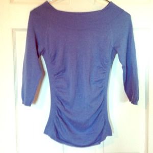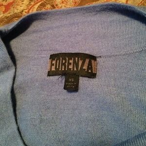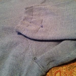 Periwinkle Length Sleeve Fitted Sweater. Small pull in material on left sleeve & tiny hole in left under arm area. Brand on tag says Forenza yet was purchased from The Limited.