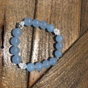 Periwinkle Jade W/ Hamsa Hands Meditation Bracelet Yoga Bracelet Gift For Her
