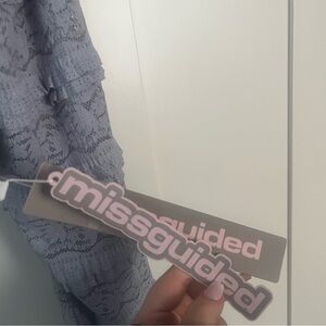 Light purple lace top with ruffle accents. Cropped and trendy style.