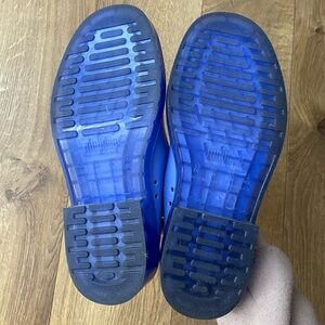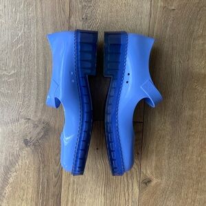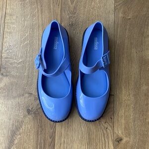 Periwinkle Melissa Jelly Mary Janes. These are in gently used condition and have only been worn a handful of times. They still smell like bubblegum! The only flaws I could find were some of the plastic isn’t as shiny, if you look at the toe part of the first pic and the dark purple sole in the last pic. Size 6 but also fits 6.5. First picture shows the color best.