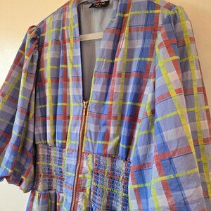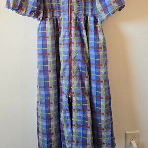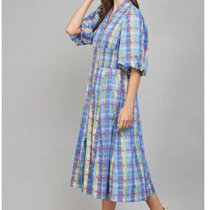 Periwinkle Olive Plaid Midi Dress - MEDIUM