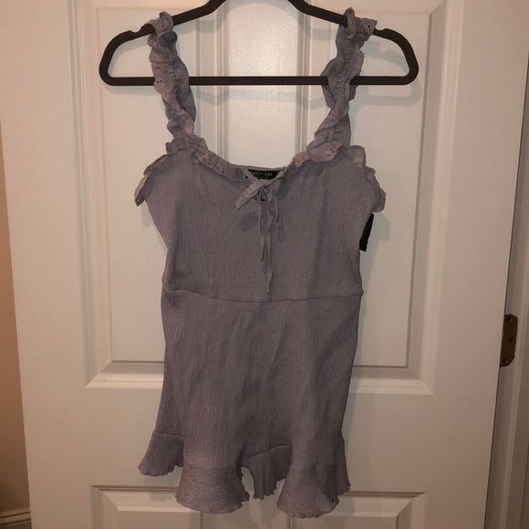Very cute romper I ordered online! I am 5’7 and it was too short on me. Very stretchy and loose fitting but shorter than expected. Fits like a 4!
