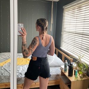 Super cute like new periwinkle colored tank top. It looks super cute with shorts or leggings or high waisted pants. It is knit material. It says size XS but would definitely fit size S as well. *All items are disinfected before shipped out. All orders will be shipped out either the day of or the following day.*