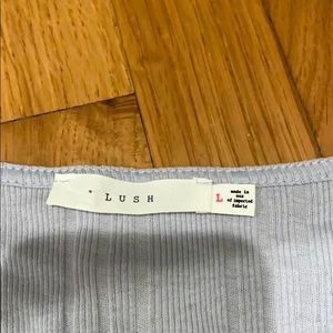 Lettuce edge ribbed top. Cute button detailing down the middle.