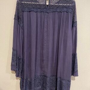 Periwinkle Umgee Tunic Blouse Dress. Lace Trim to Hem, Wrist and Chest. Definitely Oversized. Beautiful color and drape.