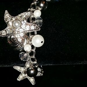 Periwinkle by Barlow Bracelet New with tag. Absolutely stunning silver tone bracelet. Faux pearls, Silver tone beads, & crystals. Charms are starfish, & shells. Adjustable bracelet. For additional information please ask questions.