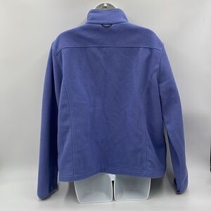 Periwinkle LL bean fleece jacket with small embroidered flower