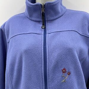 Periwinkle LL bean fleece jacket with embroidered flowers