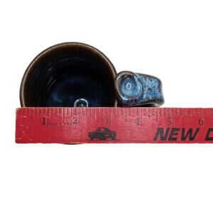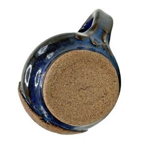 This is a vintage Perk Avenue coffee mug from Madison, Georgia. It's a beautiful piece of signed pottery, featuring a lovely blue and brown color scheme. The mug is in good vintage condition, ready to add a touch of rustic charm to your coffee routine or collection. Perfect for coffee, tea, or hot chocolate. It measures approximately 4 inches in height and 3.5 inches in diameter. A unique piece of handcrafted pottery to enjoy!