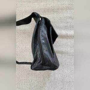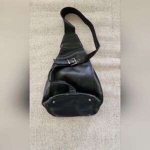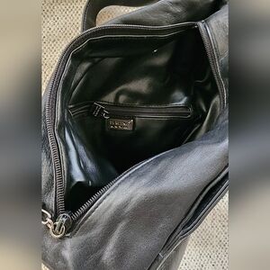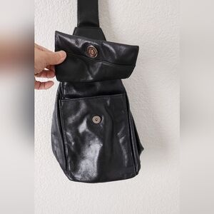 Perlina Black Leather Crossbody Backpack Travel Bag