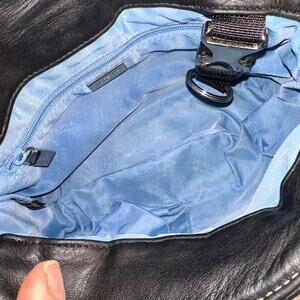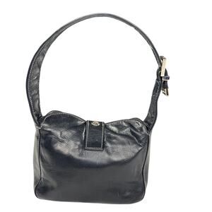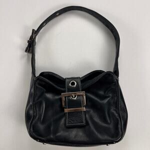 Perlina Black Leather Mini Satchel Handbag Purse Foldover Magnetic Snap