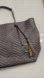 This stylish black tote bag features a chic chevron pattern and chain handles. Perfect for any occasion, it combines fashion with functionality.