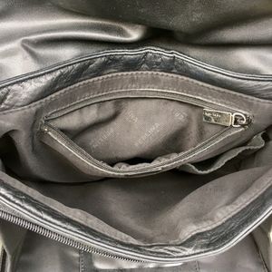 Perlina Leather Shoulder Bag with built-in wallet, holds 7 cards plus zippered pocket for cash and change. Inside there is a cell phone slot and zippered pocket. Outer slip pocket on back side too. This purse does so much!
