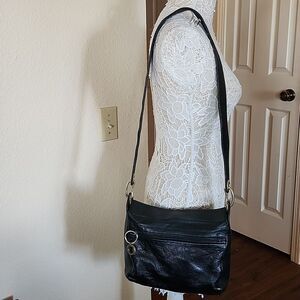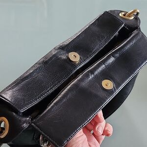 This vintage bag is made of a super soft, pliable leather that measures approximately 4x9x10. Some patina on hardware, but it is in great condition. B29.9221